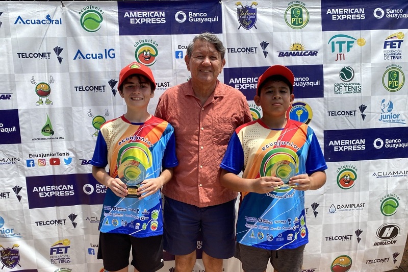 (Guayaquil, septiembre 8).- Los tenistas Flavio Bacigalupo, Enzo Ayala (Samborondón) y Gabriel Naranjo (Quito) se alzaron con el título de la novena etapa del Circuito Ecuajunior 2025, de las categorías 11 años unificado, 13 años unificado y 14+ unificado, que se desarrolló en el Centro Nacional de la FET el 5 y 6 de septiembre.