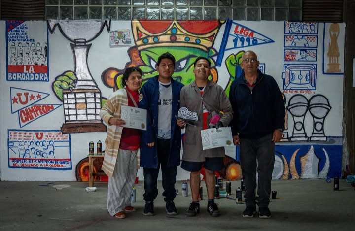 Carlos Tilinchana es un apasionado del club desde la cuna el motivo de su mural fue la línea del tiempo en los títulos de liga 69, campeonato 73-74, primer bicampeonato. Campeonato 1990. En 1999 2do bicampeonato. Tilinchana es pintor de profesión y le llevó unas siete horas terminar su obra.