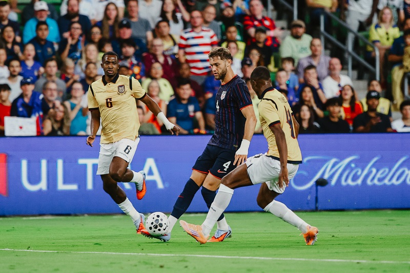 Estados Unidos generó varias situaciones de peligro, obligando a los defensas y volantes extremar recursos para mantener el arco en cero, incluso obligándolos al error, como en esta jugada que se dio a los 36 minutos, en la cual Pedro Vite casi introduce el balón en su propia puerta, pero el portero Hernán Galíndez evitó el empate de los dueños de casa.