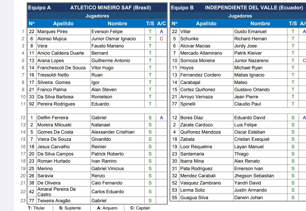 (Belo Horizonte, octubre 28).- Independiente del Valle visitará al Atlético Mineiro por la vuelta de los octavos de final de la Copa Sudamericana.
