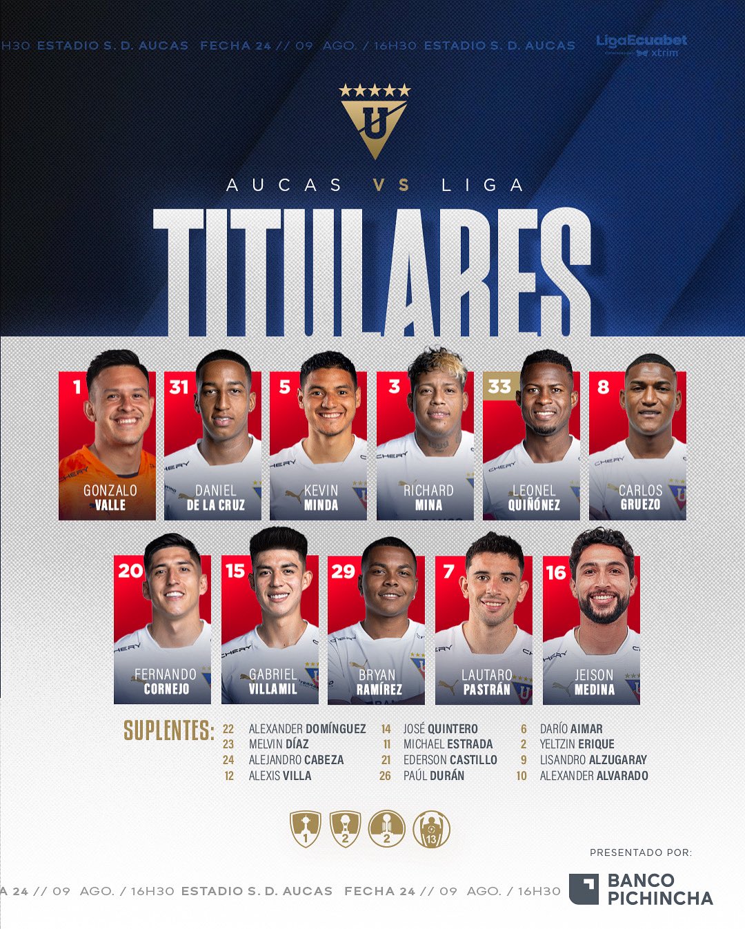 (Quito, agosto 9).- Aucas de medirá con Liga de Quito por la jornada 24 de la LigaPro.