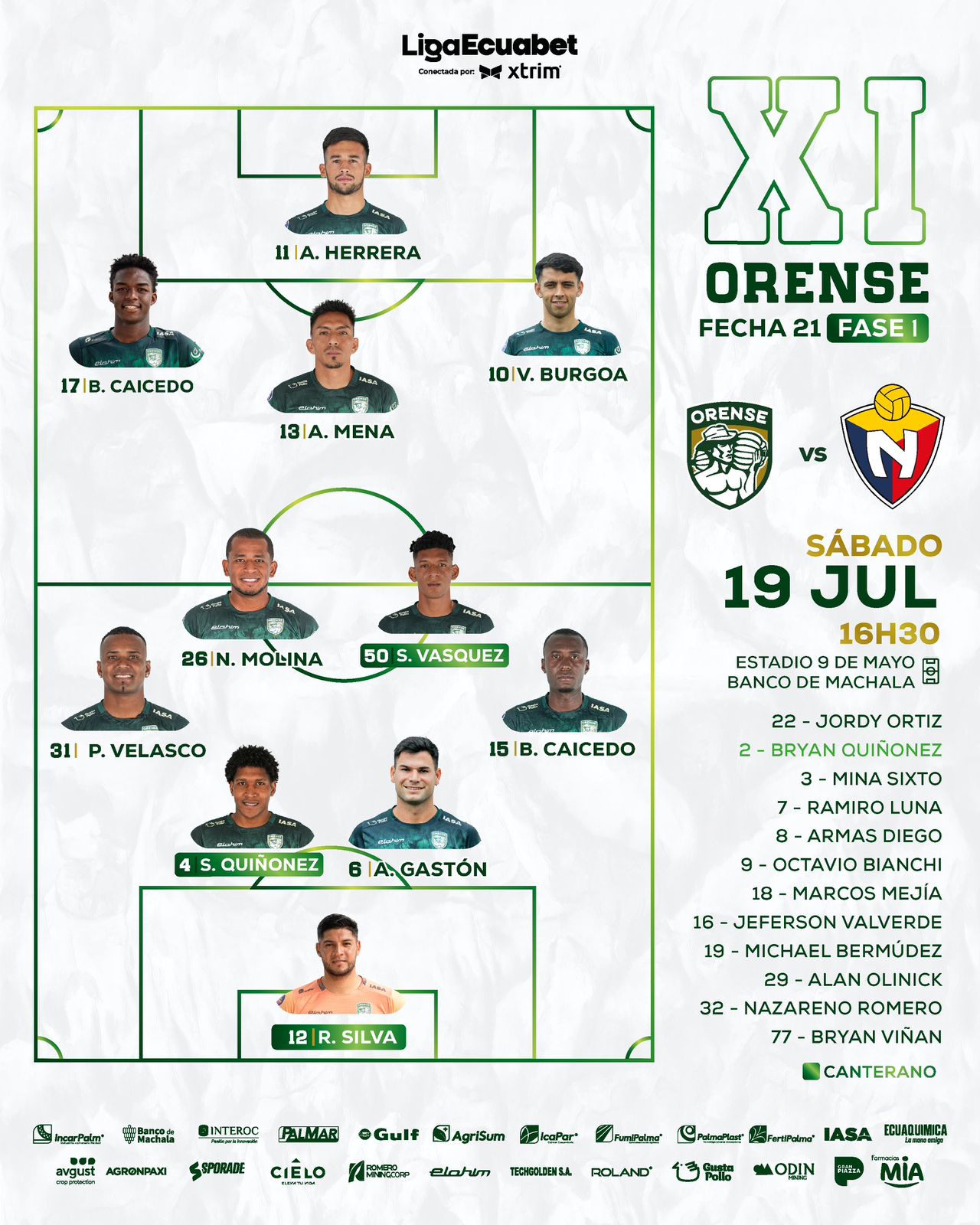 (Machala, julio 19).- Orense SC recibe a El Nacional por la fecha 21 de la Liga Ecuabet.