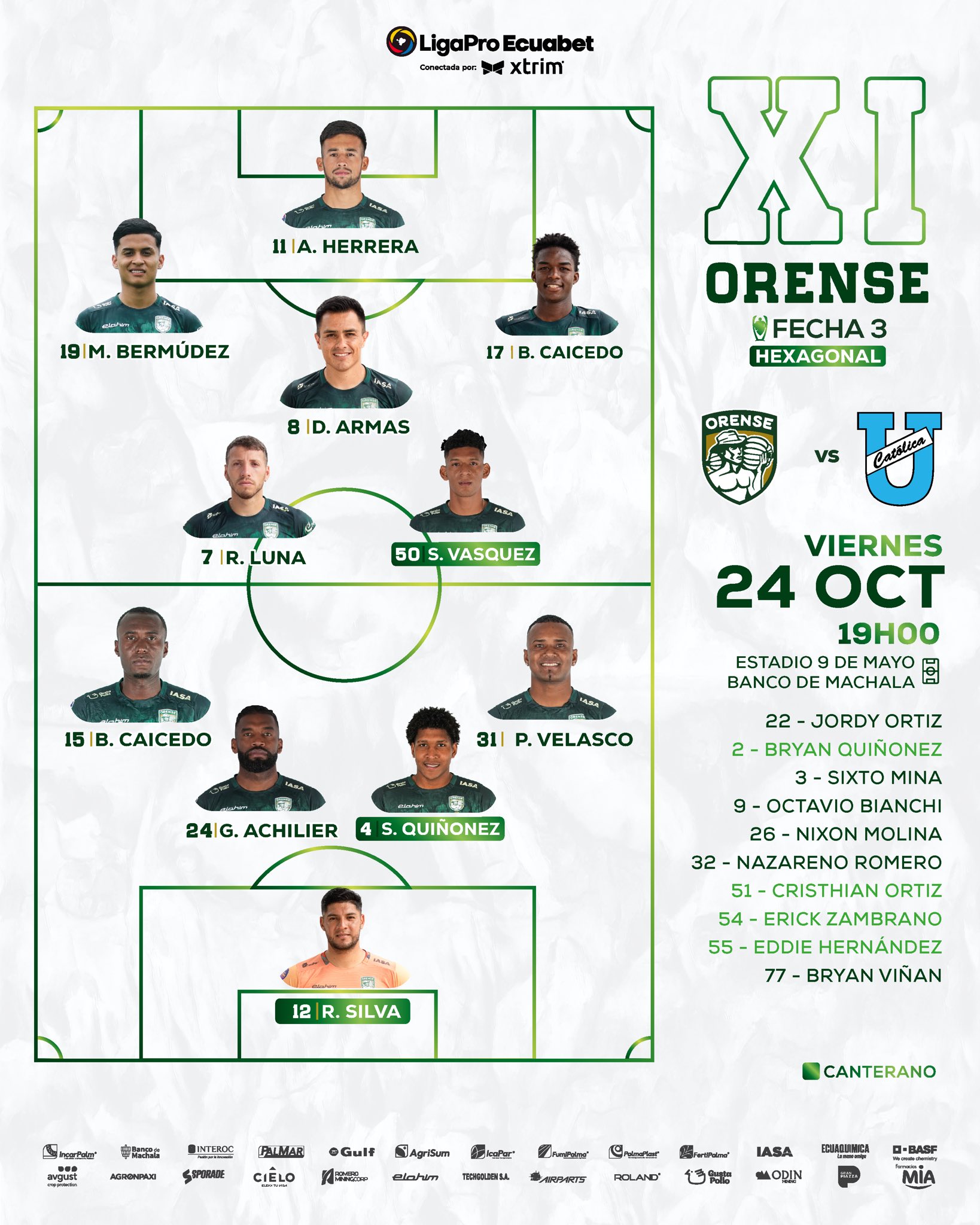 (Machala, octubre 24).- Orense enfrenta a la Universidad Católica por la tercera fecha del hexagonal principal.