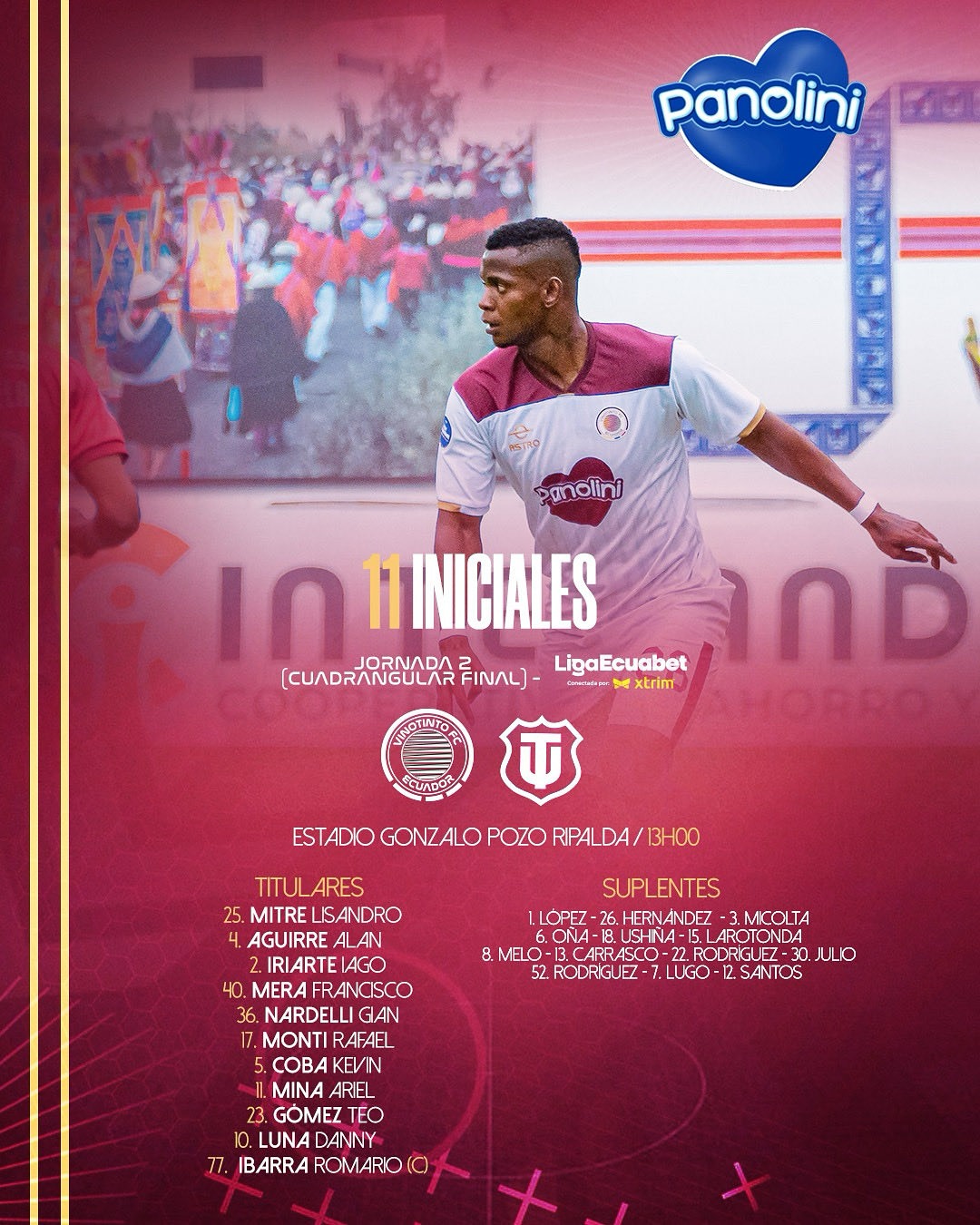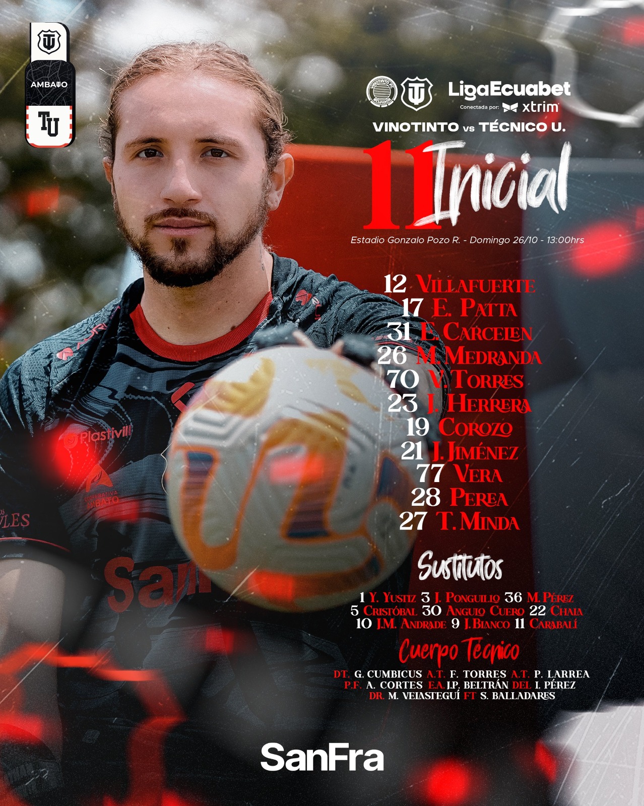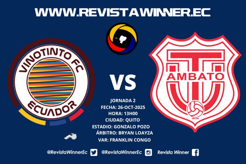 (Quito, octubre 26).-La lucha por la permanencia en la Serie A de LigaPro vivirá uno de sus capítulos más dramáticos este domingo 26 de octubre cuando Vinotinto FC reciba a Técnico Universitario en el estadio Gonzalo Pozo Ripalda, por la segunda fecha del cuadrangular del descenso. El partido, programado para las 13:00, representa prácticamente una final anticipada para ambos equipos que buscan desesperadamente mantenerse en la máxima categoría del fútbol ecuatoriano.